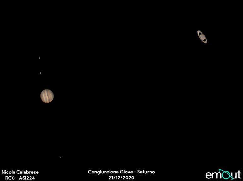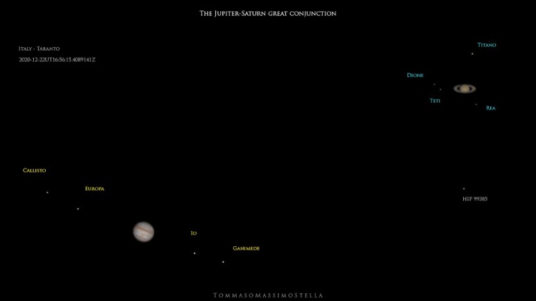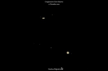 Alcune immagini relative alla grande congiunzione planetaria fra Giove e Saturno