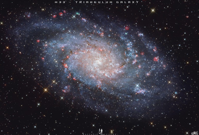 Quello che colpisce di questa galassia sono i suoi bracci a spirale aperti, ricchi di regioni di formazione stellare e nebulose ben visibili.